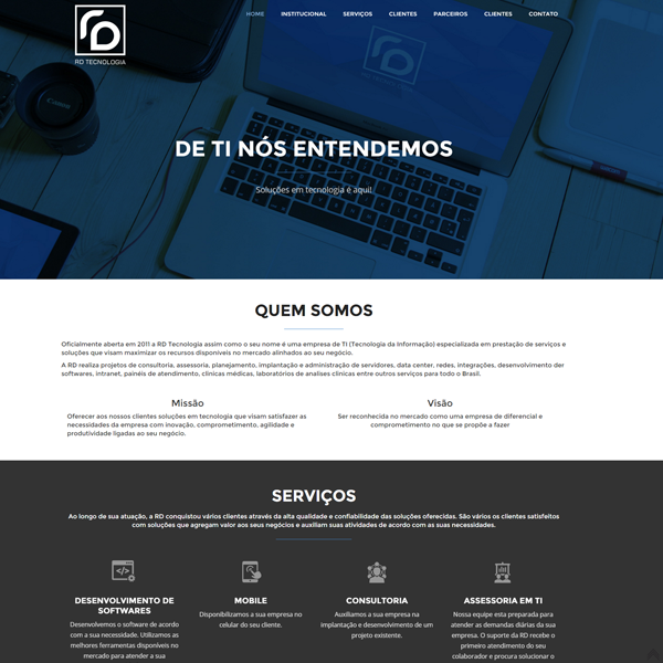 Oficialmente aberta em 2011 a RD Tecnologia assim como o seu nome é uma empresa de TI (Tecnologia da Informação) especializada em prestação de serviços e soluções que visam maximizar os recursos disponíveis no mercado alinhados ao seu negócio.